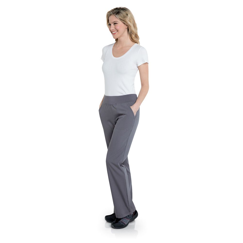 This yoga-inspired knit waistband pant with modern flare-leg styling features our new tailored hip and thigh design for a clean silhouette that compliments your figure. Side vents offer a full range of movement and back darts provide additional shaping. Roomy hip pockets for storage.